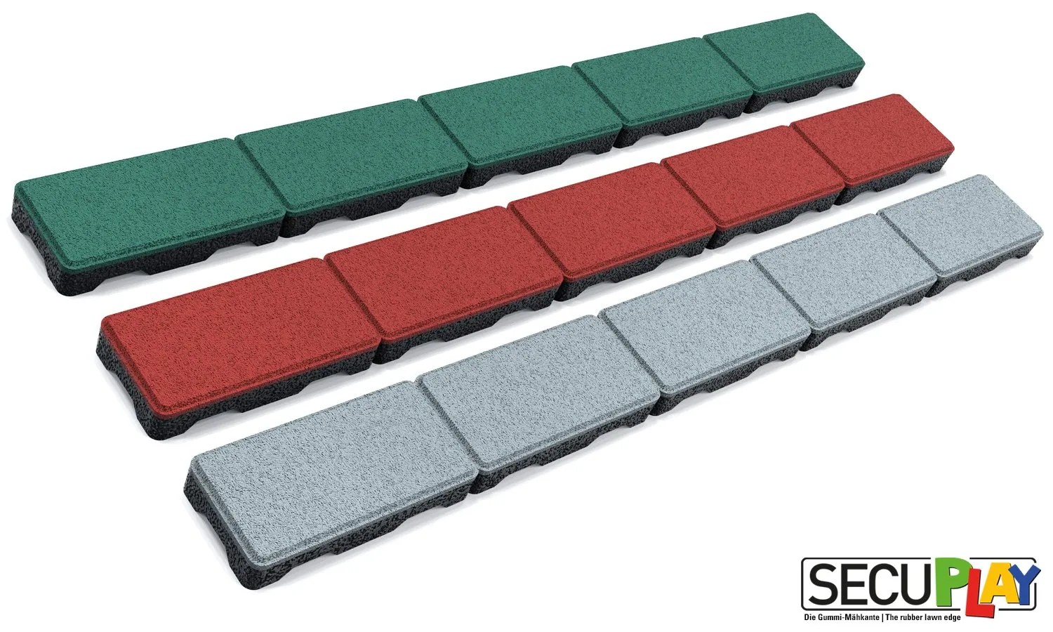 Entwickelt wurde die SECUPLAY Gummi-Mähkante als Lösung einer bekannten Problematik. Grenzt beispielsweise ein Hochbeet, Spielturm, Sandkasten, Gartenhaus, Zaun oder eine Holz-/WPC-Terrasse ohne Mähkante an den Rasen, schneiden meist weder Rasenmäher, noch Mähroboter randlos bis zum Objekt. Der Rasentrimmer erscheint zwar hier als einfache Lösung, wer aber den Randbereich trimmt, beschädigt schnell das angrenzende Material oder dessen Oberfläche. Als Alternative zur SECUPLAY Gummi-Mähkante kämen herkömmliche Mähkanten aus Betonsteinen in Frage. Jedoch müssen diese meist in Beton gesetzt und verfugt werden. Im Gegensatz zum Betonstein speichert die SECUPLAY Gummi-Mähkante kein Wasser und bietet deshalb eine Verwitterungsvorbeugung angrenzender Objekte. Im Vergleich zum Trimmen erspart man sich nicht nur das Risiko der Beschädigung des angrenzenden Objekts, sondern auch den Arbeitsschritt an sich.