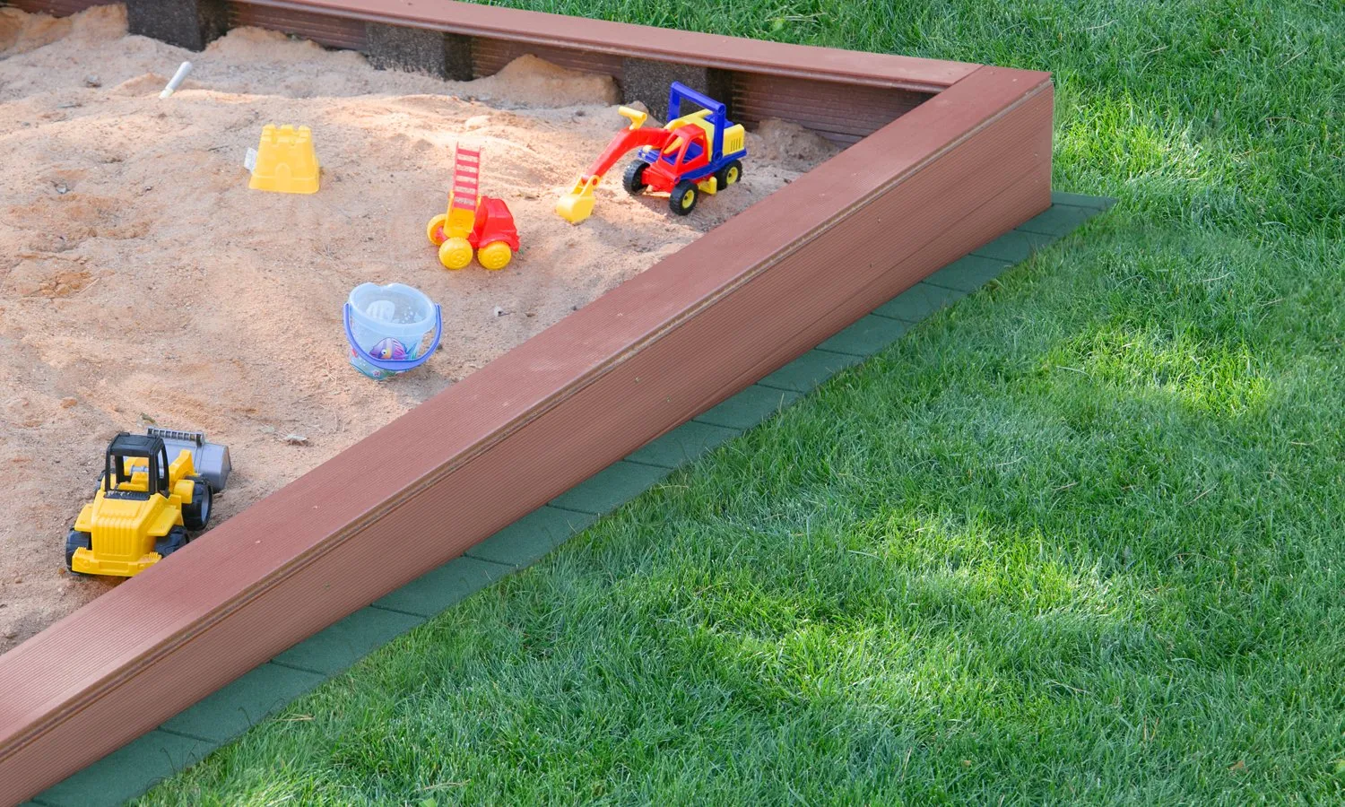 Die formschöne SECUPLAY Gummi-Mähkante ist die ideale Lösung für eine Vielzahl von Anwendungen im Garten und für Spielflächen.